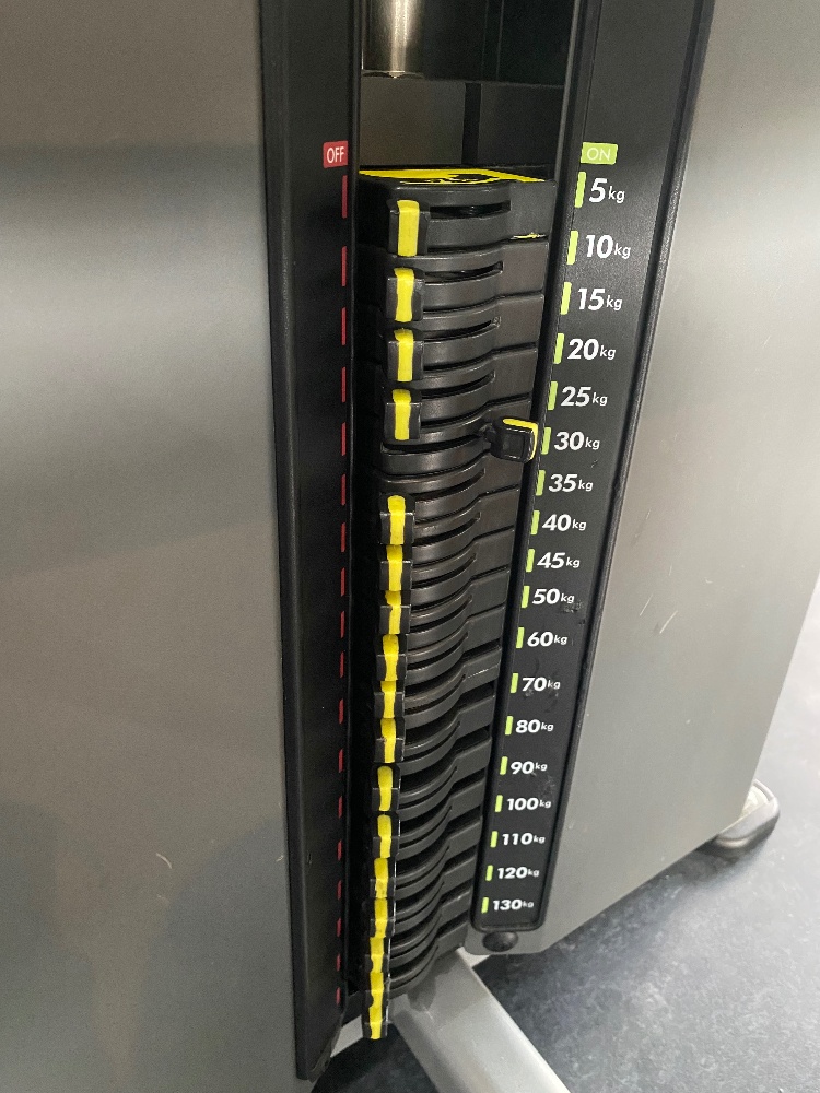 🔹マシンは座ったまま手元のレバーで簡単に重さを調節できるウェイ